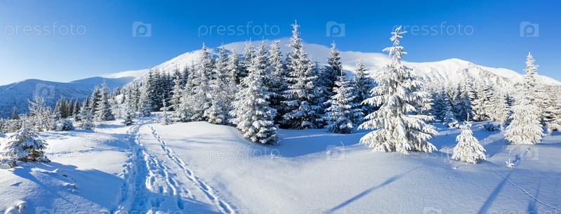 Утренний зимний горный пейзаж
