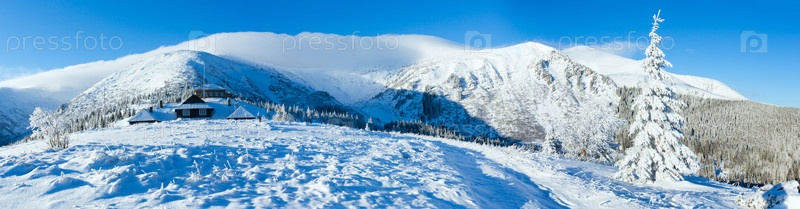 Утренний зимний горный пейзаж