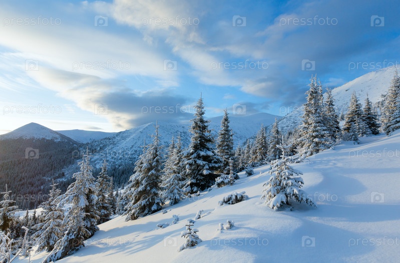 Утренний зимний горный пейзаж