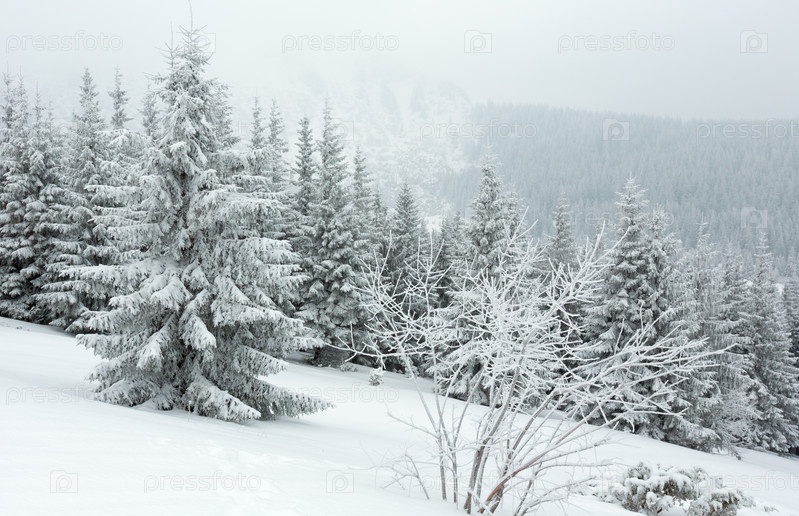 Зимний пасмурный день в горах