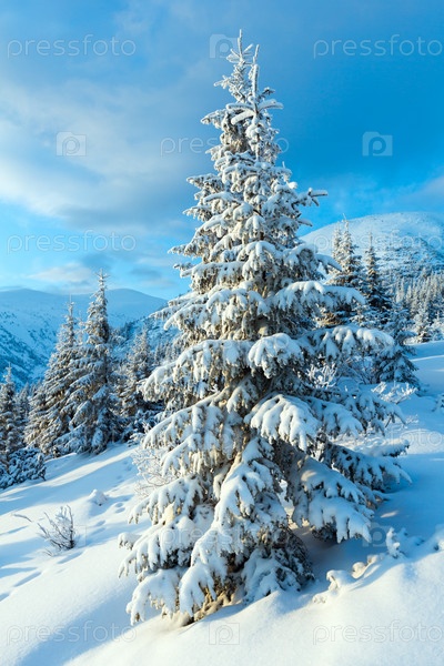 Утренний зимний горный пейзаж