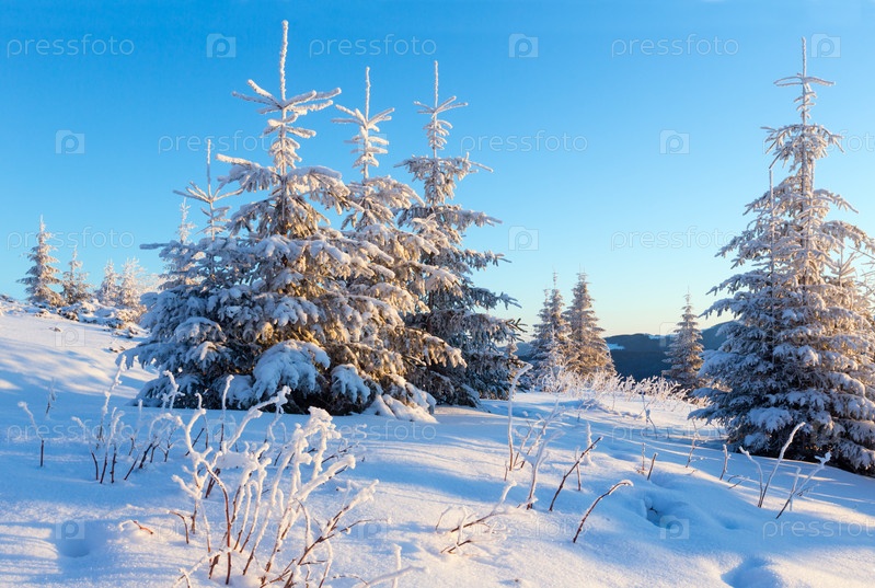 Зимний горный пейзаж на рассвете