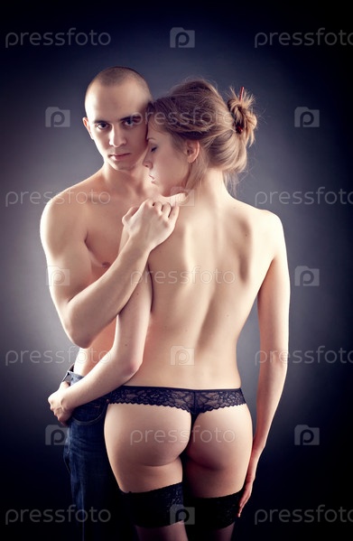 Мускулистый мужчина и девушка топлесс