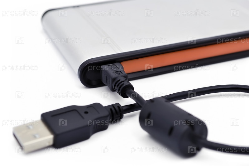 USB-кабель, подключенный к портативному накопителю