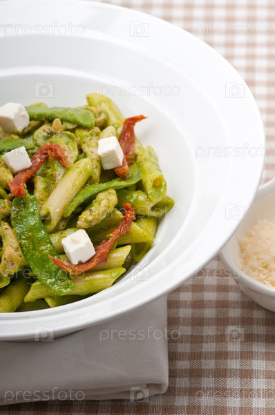 Итальянский макароны пенне с вялеными помидорами и базиликом
