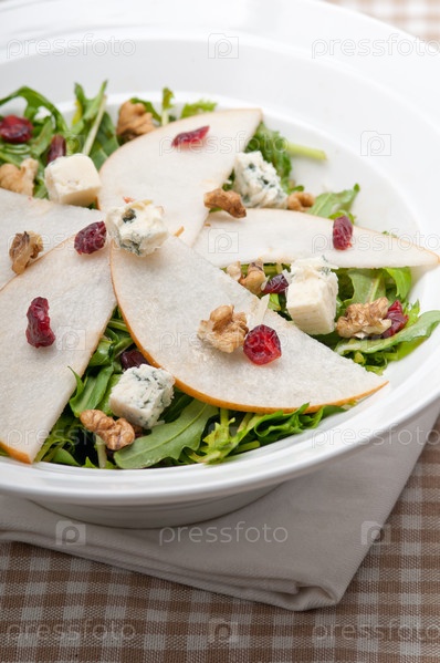 Свежий салат из груши, рукколы и сыра горгонзола