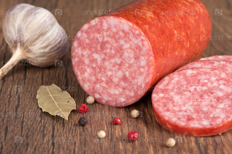 Салями на деревянном фоне
