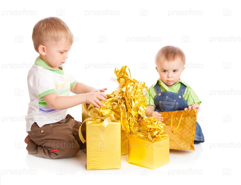 Два мальчика рассматривают подарки