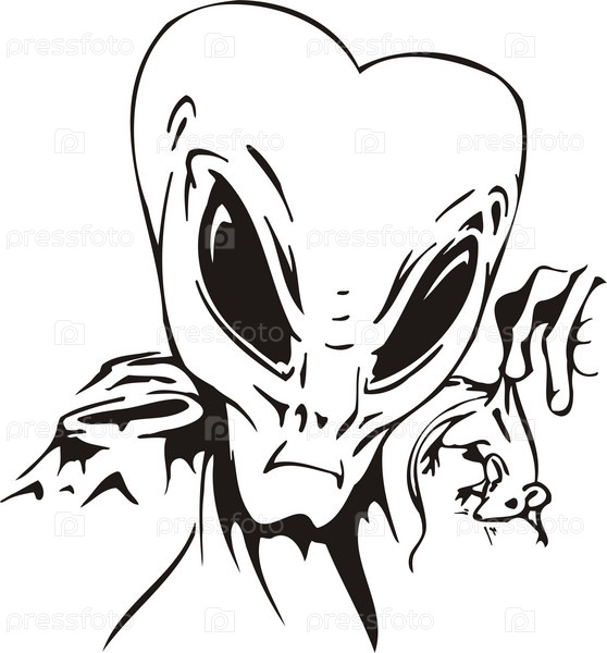 Инопланетянин рассматривает мышь. Векторная иллюстрация