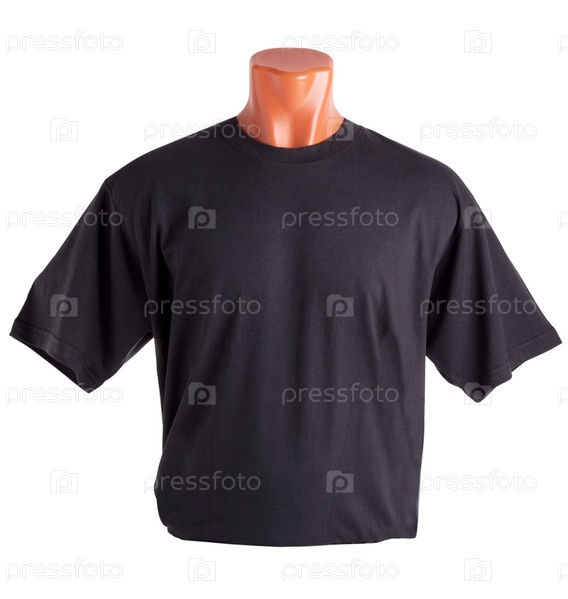 Черная футболка на манекене на белом фоне