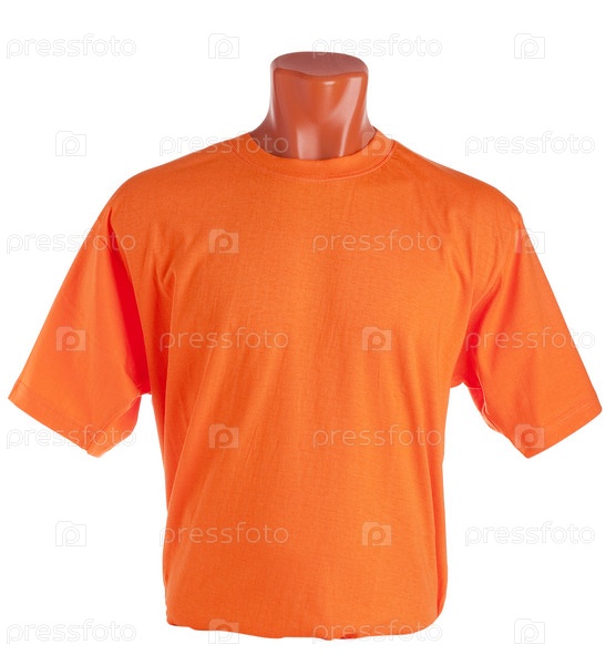 Оранжевая футболка на манекене на белом фоне