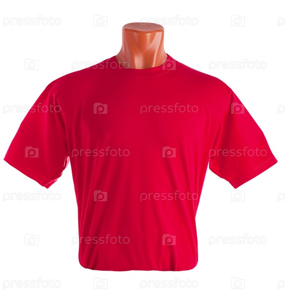 Красная футболка на манекене на белом фоне