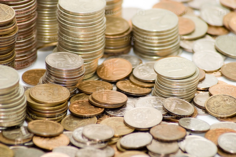 Стопки из монет и монеты россыпью