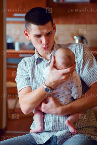 Молодой папа с маленьким ребенком на руках