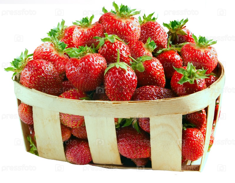 Корзина со свежей клубникой на белом фоне