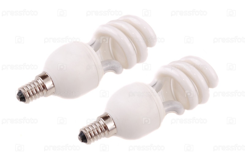 Две лампы в форме спирали на белом фоне
