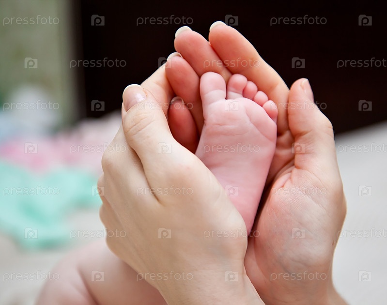 Детская ножка в маминых руках