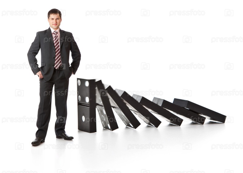 Успешный бизнесмен на фоне домино