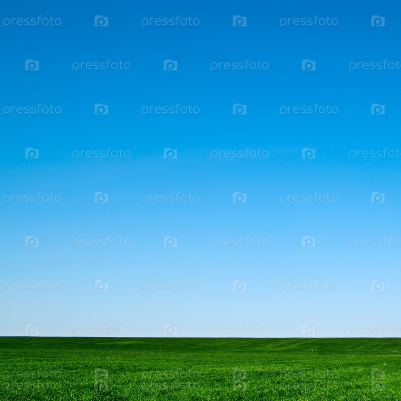 Пейзаж синего неба и зеленой травы