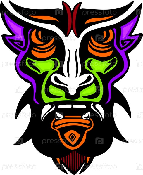 Яркое, красочное векторное изображение в стиле древней маски