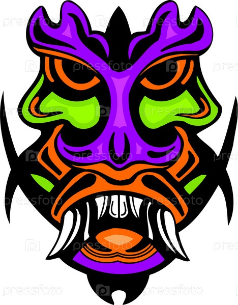 Яркое, красочное векторное изображение в стиле древней маски