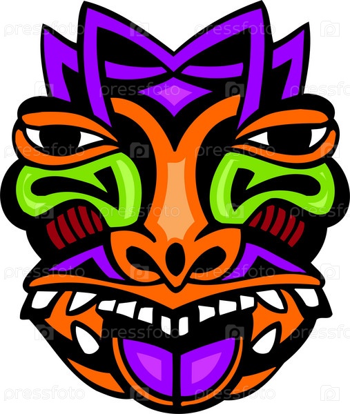 Яркое, красочное векторное изображение в стиле древней маски