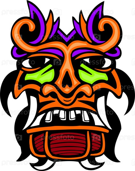 Яркое, красочное векторное изображение в стиле древней маски