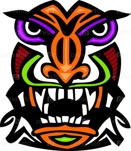 Яркое, красочное векторное изображение в стиле древней маски