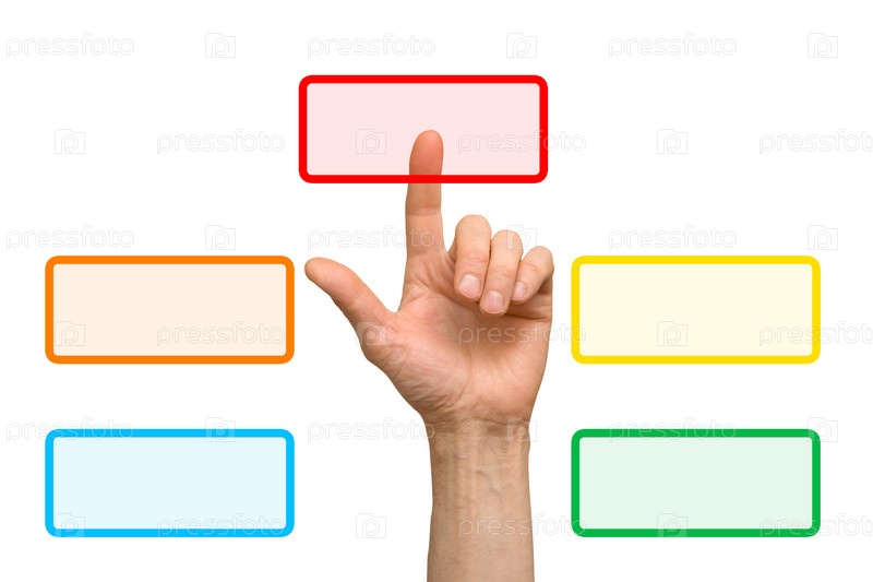 Человеческая рука нажимает на красную кнопку, изолированные на белом фоне