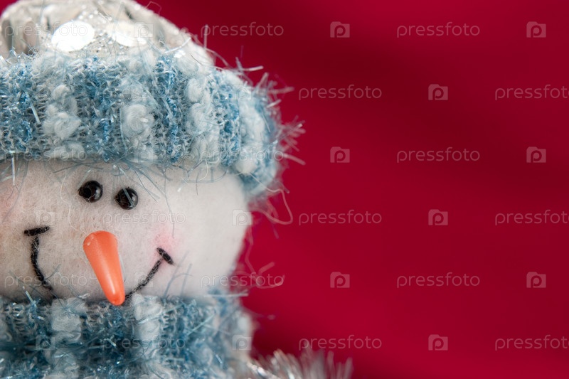Рождественский снеговик на красном фоне