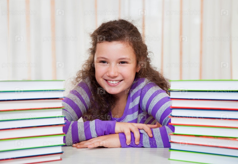 Девочка со стопками книг