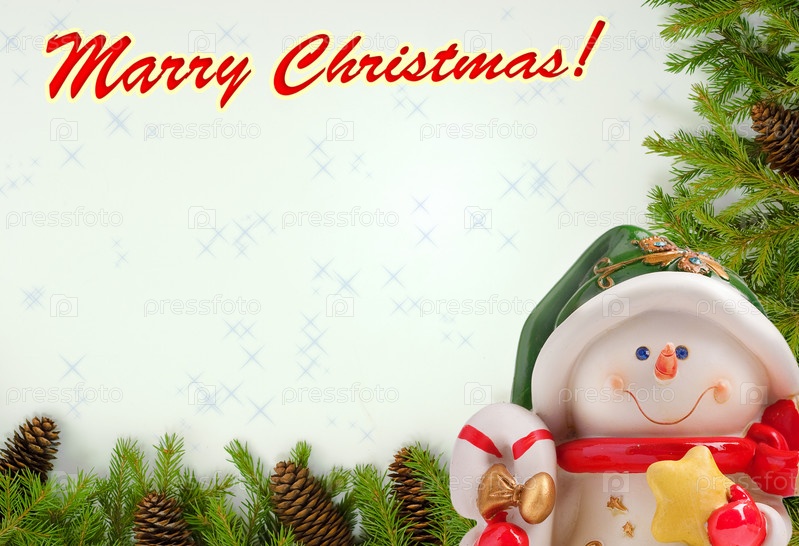 Яркая рождественская открытка со снеговиком