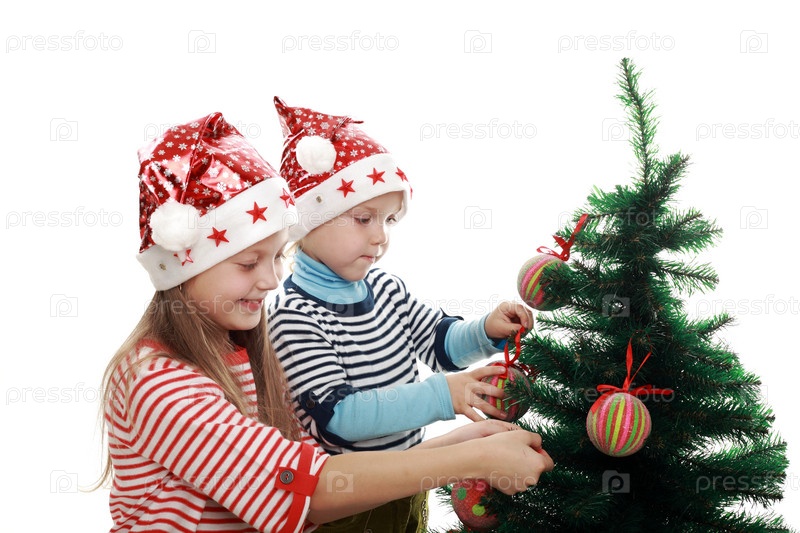 Две девочки украшают новогоднюю елку