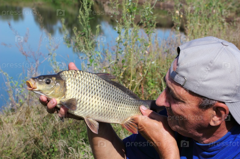 Карп в руке рыбака
