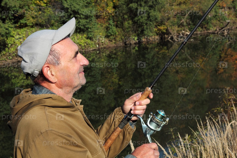 Старый рыбак со спинингом