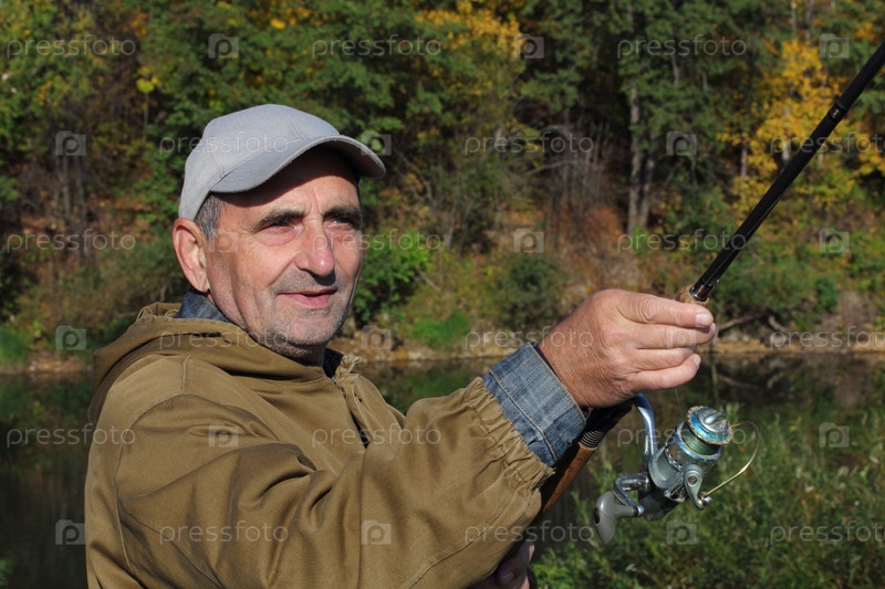 Старый рыбак со спинингом