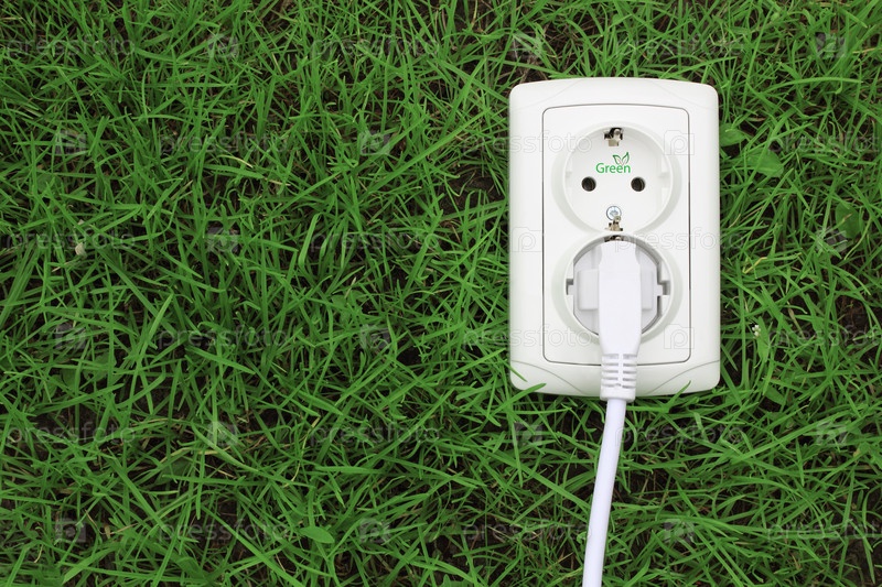 Электрическая розетка на фоне зеленой травы