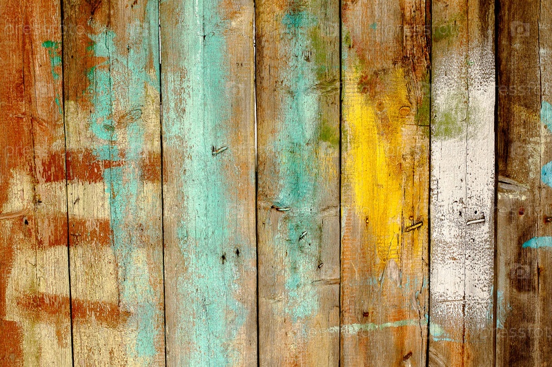 Старый деревянный забор, окрашенный в разные цвета