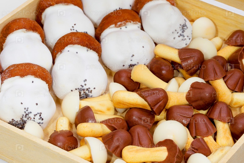 Печенье грибы в деревянной коробке