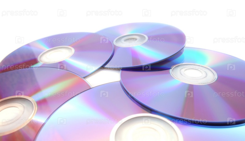 Пять DVD-дисков, изолированных на белом