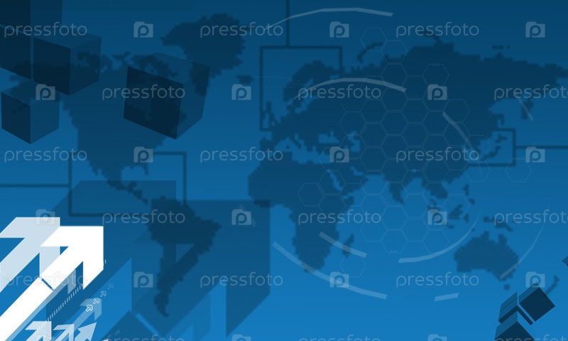 Абстрактный синий фон с географической картой и геометрическими фигурами