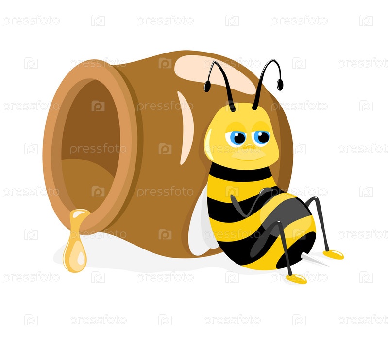 Векторная иллюстрация, пчела сидит у горшка меда