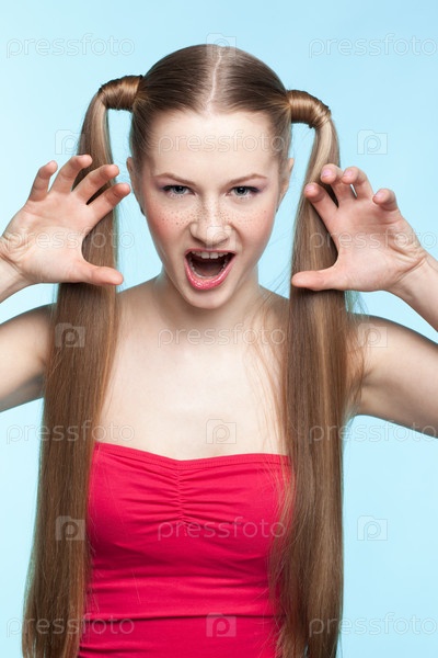 Агрессивная девушка в красном платье