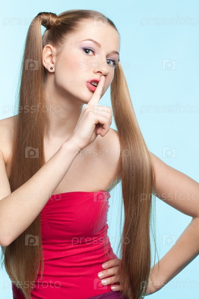 Веснушчатая девушка в красном платье