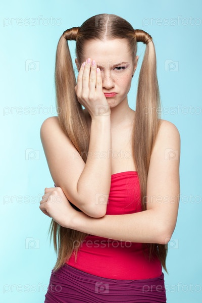 Веснушчатая девушка в красном платье