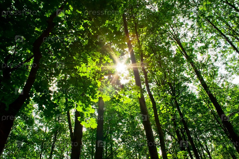 Солнечный день в зеленом лесу