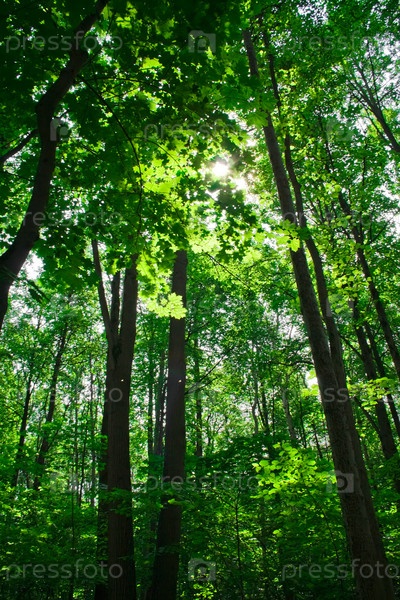 Зеленый лес с высокими деревьями