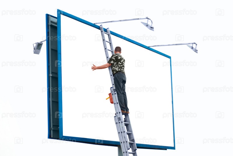 Мужчина у рекламного щита