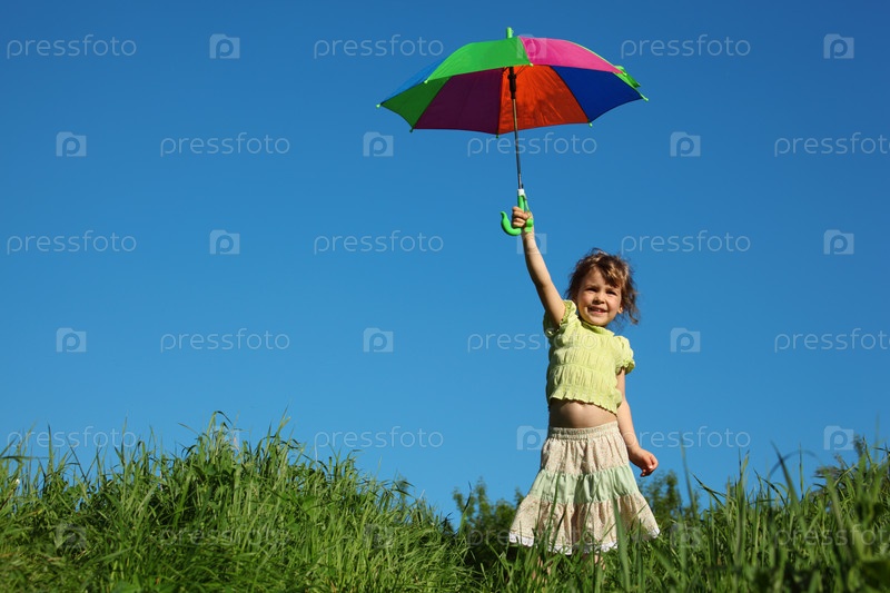 Девочка на природе с разноцветным зонтиком в руке