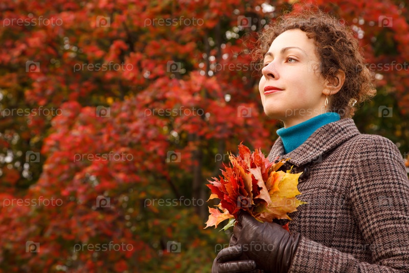 Портрет девушки с листьями в осеннем парке